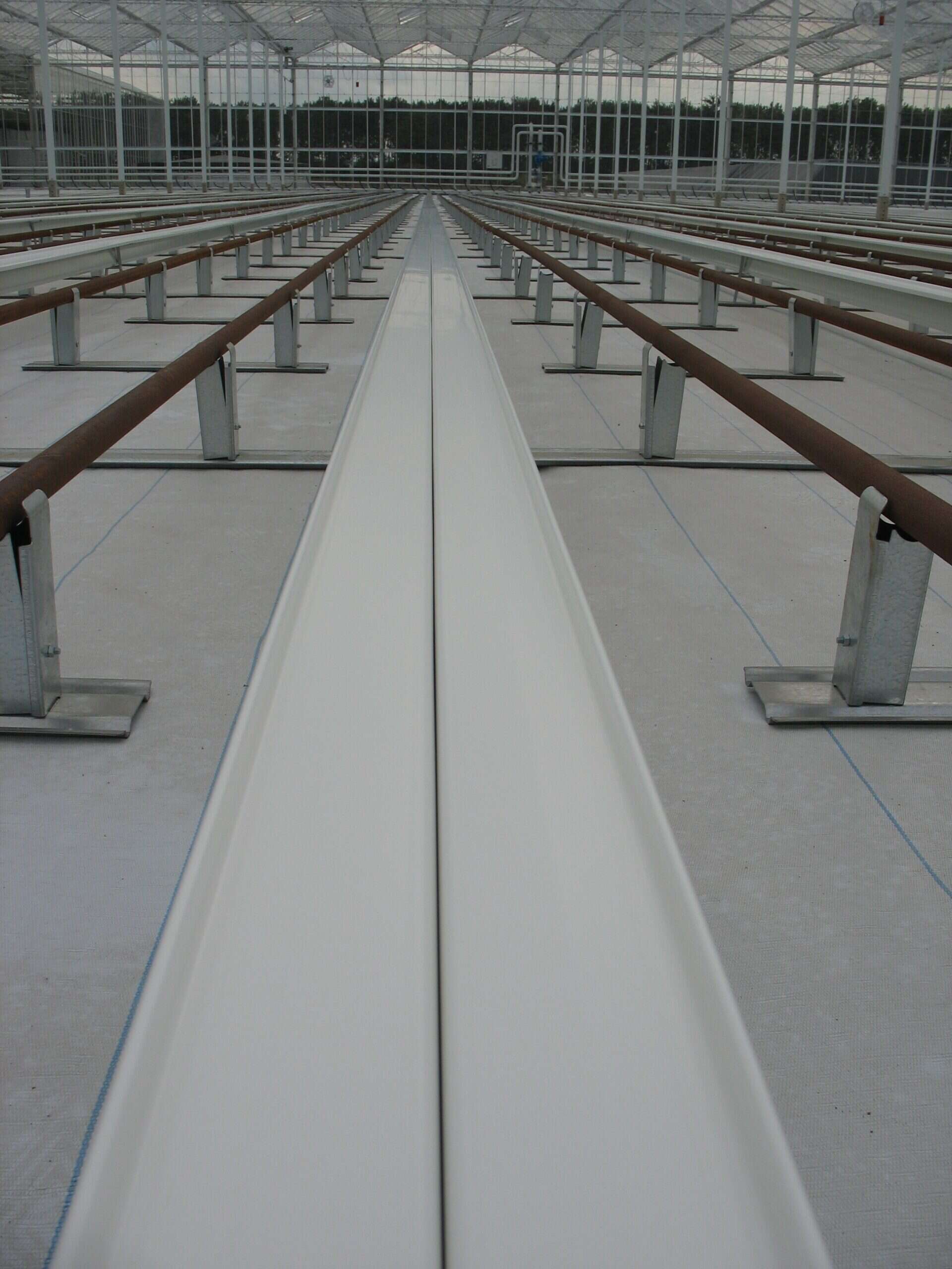 Smart alternative to hanging gutter system in light greenhouses