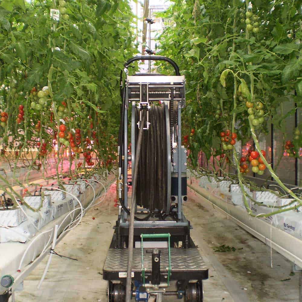 Geschikt voor buisrails én vloer: De JBL rijdt soepel over buisrails en is ook inzetbaar op vlakke ondergronden, wat hem veelzijdig maakt voor gebruik in elke kas.