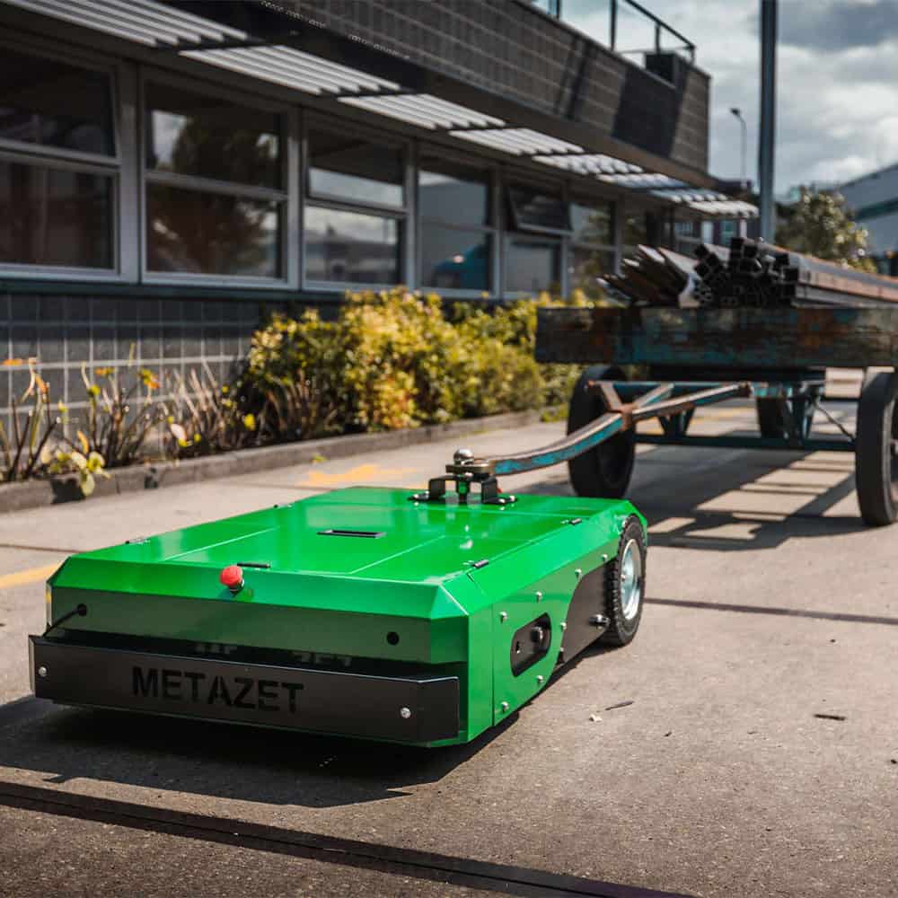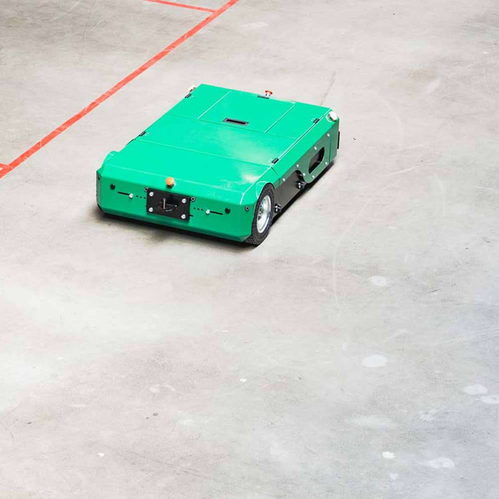 De M-Flex is een slimme en volledig automatische transportoplossing die interne logistieke processen een stuk makkelijker maakt. Dit voertuig werkt lasergestuurd en kan daardoor zelfstandig door een ruimte navigeren. Zo verplaatst het voertuig goederen zonder dat er handmatige bediening nodig is.