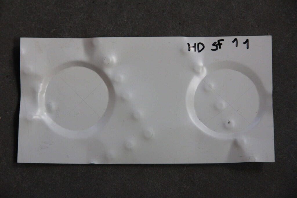 Monsters van de verschillendemateriaalopties zijn blootgesteld aan verschillende schoonmaak- en desinfectie middelen. De tests zijn uitgevoerd onder realistische omstandigheden, waarbij de monsters bewust zijn vervormd en bekrast.