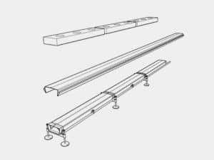 Het kartonnen element is constructief sterk en wordt volledig beschermd door een kunststof slurf, waardoor het geïsoleerd blijft van vocht en buitenlucht. Dit verlaagt materiaalkosten en maakt nauwkeurig afstellen eenvoudig.